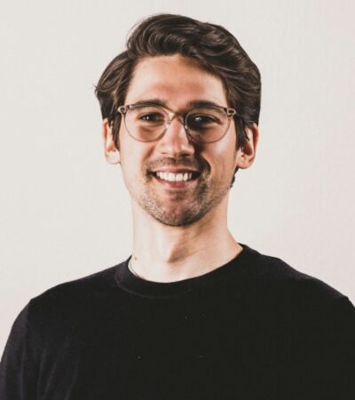 Workers equipped with helmets are engaged in construction work, handling scaffolding and iron rods. The scene is black and white, capturing the imposing structure against a backdrop of cloud-filled sky.